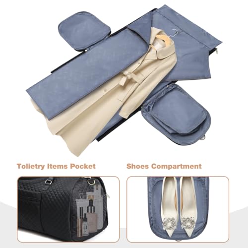 Faltbare 2-in-1 Reisetasche für Damen : Ausgefallenes Design, das die Funktionen einer Kleidertasche und einer Reisetasche für Damen kombiniert, mit hängenden Kleidungsstücken (für Anzüge, Röcke, Abendkleider usw.), mehreren Innentaschen und einem großen Fassungsvermögen (für Schuhe, Toilettenartikel, Kosmetika und elektronische Geräte usw