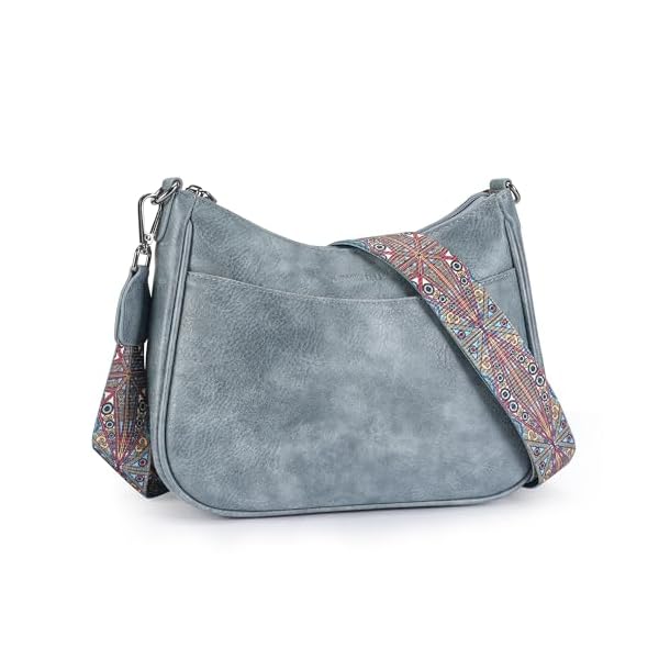 APHISON Klein Crossbody Bag mit Breitem Gurt Schultertasche Umhängetasche Damen veganem Leder blau Handtasche Tasche mit Abnehmbarem Schultergurt Kartenschlitz Reisetasche