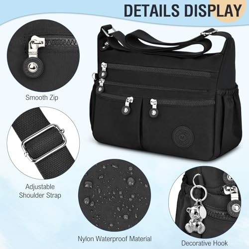MEHRERE TASCHEN: Diese große Crossbody-Tasche hat alles, was Sie brauchen: 11 Fächer, darunter 1*großes Hauptfach, 1*integriertes Reißverschlussfach, 2*integrierte Fächer, 4*Vordertaschen, 2*Seitentaschen und 1*Anti-Diebstahl-Tasche hinten. Das Hauptfach ist mit einem Schlüsselhaken ausgestattet. Das multifunktionale Taschenlayout sorgt für Ordnung in Ihrem Hab und Gut.