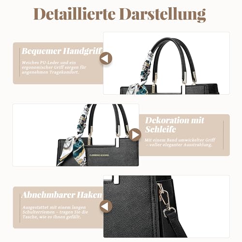 Elegante Handtasche: Die Handtasche ist mit exquisiten und wunderschönen Henkelbändern verziert, was sehr elegant und modisch ist. Mit dem verstellbaren und abnehmbaren langen Schultergurt können Sie die Trageweise nach Belieben ändern und Ihren Bedürfnissen bei verschiedenen Anlässen und Vorlieben gerecht werden. Sie kann als Handtasche Damen, Umhängetasche Frauen, Elegant Henkeltaschen, Top-Griff Taschen, usw.