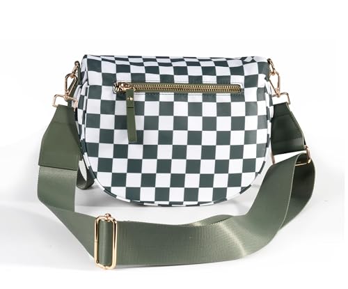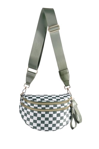 Damen-Umhängetasche, geräumige Gürteltasche mit Karomuster, Crossbody-Tasche mit doppeltem Reißverschluss, verstellbarer und abnehmbarer breiter Schulterriemen