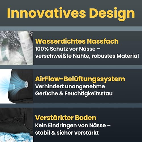 𝐌𝐈𝐓 𝐖𝐀𝐒𝐒𝐄𝐑𝐃𝐈𝐂𝐇𝐓𝐄𝐌 𝐍𝐀𝐒𝐒𝐅𝐀𝐂𝐇 & 𝐒𝐄𝐏𝐀𝐑𝐀𝐓𝐄𝐌 𝐒𝐂𝐇𝐔𝐇𝐅𝐀𝐂𝐇 – Ein abgetrenntes, wasserdichtes Nass-Fach schützt zuverlässig vor Auslaufen und ist ideal für Badesachen oder verschwitzte Kleidung. Das separate, belüftete Schuhfach mit Airflow-Technologie hält Sportschuhe hygienisch getrennt vom Rest.