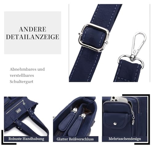KL928 Handtasche Damen Tasche Umhängetasche Schultertasche Damentaschen gross für Damen Frauentasche PU Leder Damenhandtasche mit vielen Fächern (blue)