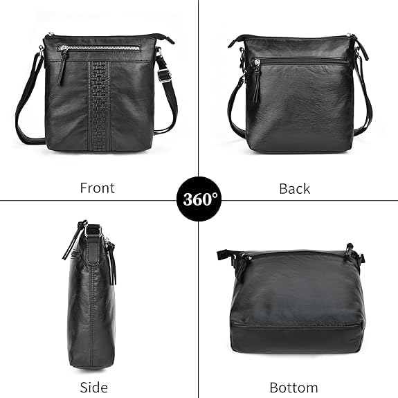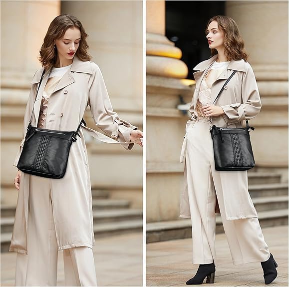 LOKASS Handtasche Damen Umhängetasche mittelgroß – Schultertasche aus weichem PU-Leder mit verstellbarem Gurt, modische Handtasche für Alltag & Büro – Schwarz