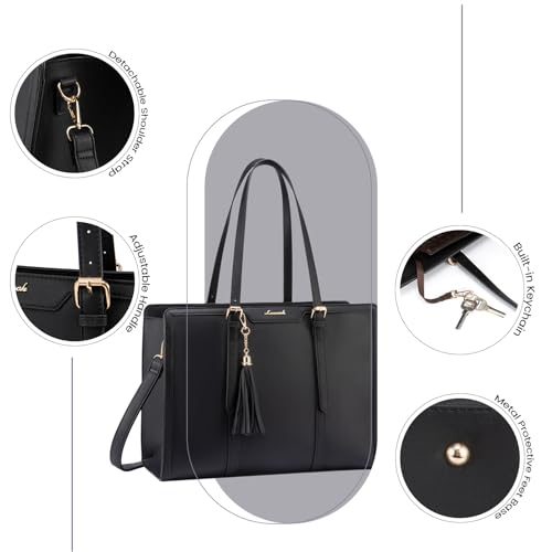 LOVEVOOK Laptoptasche 15,6 Zoll Handtasche Damen Umhängetasche Leder Tote Bag Women Shoulder Crossbody Bag Große Shopper Tasche Elegante Schultertasche Aktentasche Arbeitstasche Lehrertasche für Büro