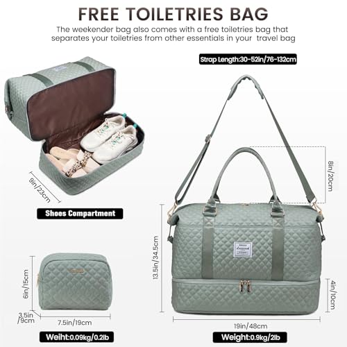 👛Mit Separatem Schuhfach & Kosmetiktasche: Diese Reisetasche damen verfügt über ein separates Schuhfach mit Belüftungslöchern an der Unterseite, in dem 2 Paar Schuhe oder Decken, schmutzige Kleidung usw. untergebracht werden können und belüftet bleiben. Darüber hinaus liegt dieser Reisetasche auch eine kleine Beutel bei, in der sich diverse kosmetik oder Toilettenartikel verstauen lassen.