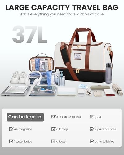 【Separates Schuhfach & Nassfach】: Das separate Schuhfach bietet Platz für 2-3 Paar Schuhe oder schmutzige Kleidung. Das Hauptfach ist mit einem wasserdichten PVC-Reißverschlussfach für nasse Kleidung und Handtücher ausgestattet. Im Lieferumfang ist ein 27*7*16 cm großer Kulturbeutel enthalten, in dem Sie Ihre Sachen ordentlich aufbewahren können.