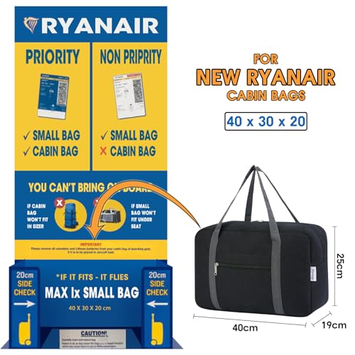 ✅ SPAREN SIE IHRE ZUSÄTZLICHEN GEBÜHREN – [Modell: T3201] Die Taschengröße 40x19x25cm passt perfekt in die Größe des kleinen Handgepäckstücks 40x20x25cm von Ryanair Airlines und 40x30x20cm von Wizzair Airlines (inkl der neuen 40x30x20cm Ryanair Kleine Tasche für unter den Sitz), die unter dem Sitz platziert werden kann und kein zusätzliches Gepäck bezahlen muss.