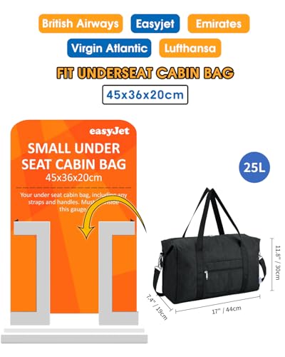 Fluglinienfreundliches Handgepäck – Taschengröße 44 x 30 x 19 cm (Fassungsvermögen 25 l) passt in Handgepäcktaschen (45 x 36 x 20 cm) von Easyjet, British Airlines, Emirates und Virgin Atlantic. Kann unter dem Sitz verstaut werden, ohne dass Handgepäckgebühren anfallen