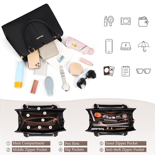 RAINSMORE Handtaschen Damen Mittelgroß Wasserdichte PU Leder Tasche Damen mit Anti-Diebstahl-Tasche Modische Schultertasche Henkeltasche Umhängetasche für Arbeit Business und Freizeit
