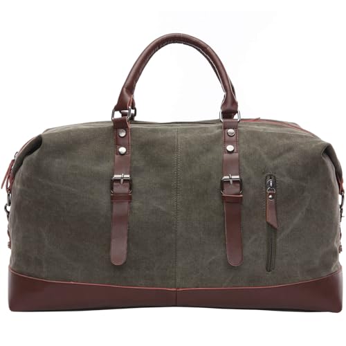 Reisetasche aus Segeltuch, 40–50 l, große Kapazität, Reisetasche, Sporttasche, multifunktionale Schultertasche, Hand- und Crossbody-Tragetasche, Wochenendtasche für Damen und Herren, grün, Reisetasche