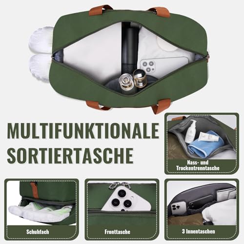 Sporttasche & Reisetasche für Damen und Herren – mit Schuhfach & Nassfach, Large Capacity Travel Bag Leichte Trainingstasche wasserdichte Schwimmtasche für Reisen, Sport, Fitness
