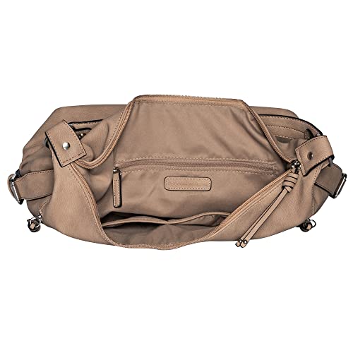 Das weich genarbte Nubukleder-Imitat der beliebten TOM TAILOR bags-Serie Caia ist von echtem Leder nur schwer zu unterscheiden. Mit mehreren Fächern bietet der Innenraum der Styles multifunktionale Verstaumöglichkeiten. Beutel mit Reißverschlussöffnung, 2 Reißverschlussfächer vorne, 1 Reißverschlussrückfach. Innen 1 Reißverschlussfach, 1 Smartphone-Fach, 1 Steckfach, 1 flacher Trageriemen, 1 abnehmbarer verstellbarer Schulterriemen. Passend dazu sind 2 attraktive Geldbörsen erhältlich.