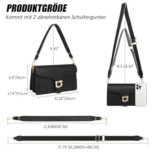 ❥【Große Fassungsvermögen Crossbody Bag Damen Trendig】: Mit Abmessungen von 26 cm(L) x 14 cm(H) x 9.5 cm (B) bietet diese handtasche damen mittelgroß 1 Fronttasche, 1 Rückentasche, 2 offene Fächer, 1 Reißverschlussfach und 1 Dreikartensteckplatz, alle gesichert mit einem Klappen-Magnetverschluss. Sie bietet organisierten Stauraum für Ihr Telefon, Kreditkarten, Schlüssel, Lippenstift, Reisepass, Kosmetik, Geldbörse und andere Notwendigkeiten, die Sie tragen müssen.