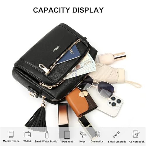 Umhängetasche Damen mit Anti Diebstahl, Handtasche Damen Mittelgroß mit 4 Fächern, mit Verstellbar Abnehmbar Breiter Gurt