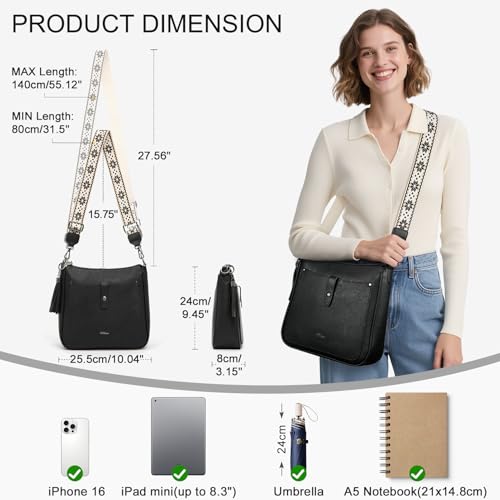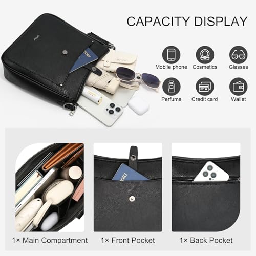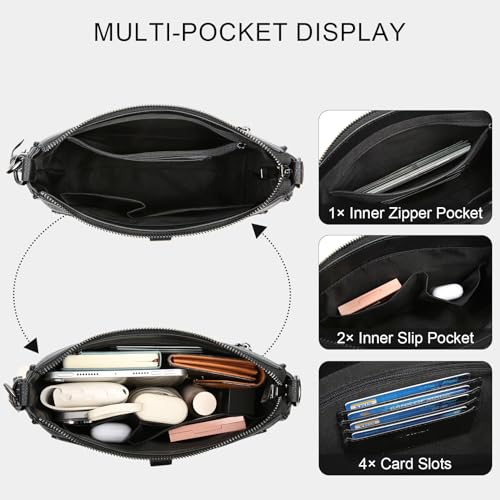 Umhängetasche Damen Mittelgroß mit Anti Diebstahl, Handtasche Damen 3 Fächern mit Verstellbar Abnehmbar Breiter Gurt